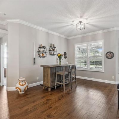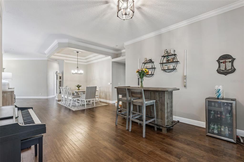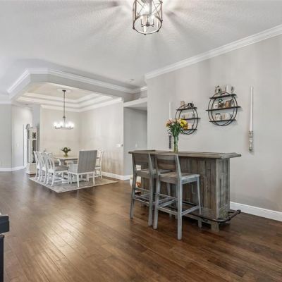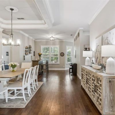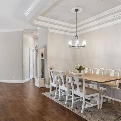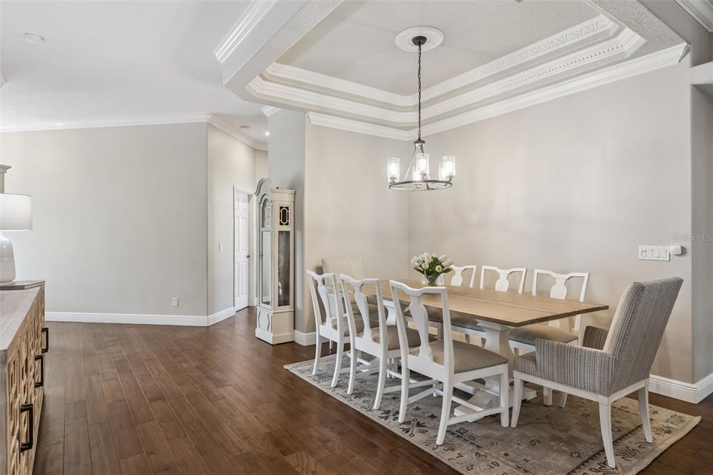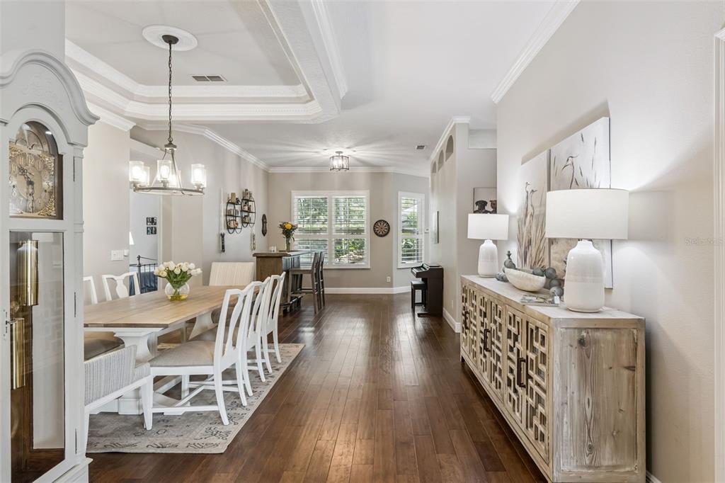 Ceiling Fan(s), Coffered Ceiling(s), Crown Molding, Eating Space In Kitchen, High Ceilings, In Wall Pest System, Living Room/Dining Room Combo, Primary Bedroom Main Floor, Solid Surface Counters, Solid Wood Cabinets, Split Bedroom, Tray Ceiling(s), Walk-In Closet(s), Window Treatments