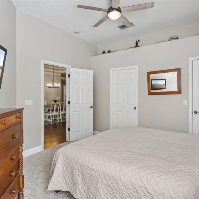 Ceiling Fan(s), Coffered Ceiling(s), Crown Molding, Eating Space In Kitchen, High Ceilings, In Wall Pest System, Living Room/Dining Room Combo, Primary Bedroom Main Floor, Solid Surface Counters, Solid Wood Cabinets, Split Bedroom, Tray Ceiling(s), Walk-In Closet(s), Window Treatments