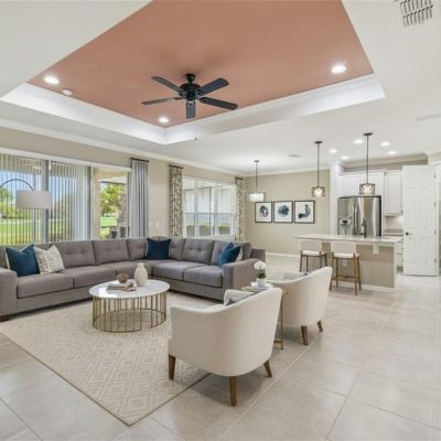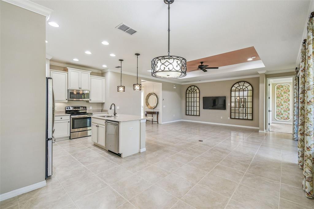 Crown Molding, Kitchen/Family Room Combo, Open Floorplan, Primary Bedroom Main Floor, Split Bedroom, Stone Counters, Tray Ceiling(s), Walk-In Closet(s), Window Treatments