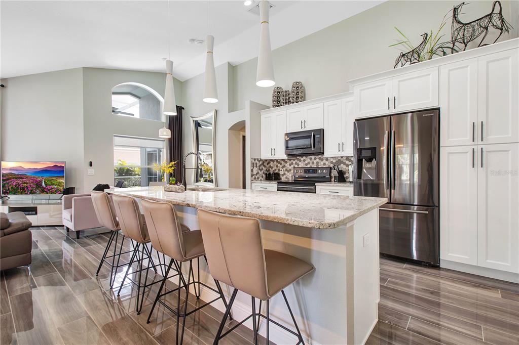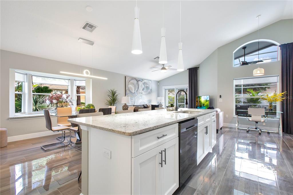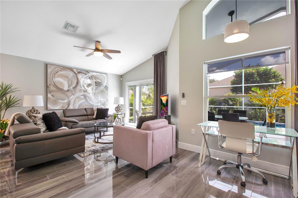 Ceiling Fan(s), High Ceilings, Open Floorplan, Window Treatments