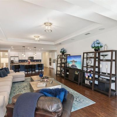 Ceiling Fan(s), Chair Rail, Crown Molding, Eating Space In Kitchen, High Ceilings, Kitchen/Family Room Combo, Open Floorplan, Primary Bedroom Main Floor, Solid Surface Counters, Solid Wood Cabinets, Split Bedroom, Tray Ceiling(s), Walk-In Closet(s), Window Treatments