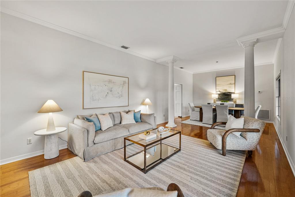 Built-in Features, Ceiling Fan(s), Crown Molding, Eating Space In Kitchen, High Ceilings, Living Room/Dining Room Combo, Primary Bedroom Main Floor, Solid Surface Counters, Solid Wood Cabinets, Tray Ceiling(s), Walk-In Closet(s), Window Treatments