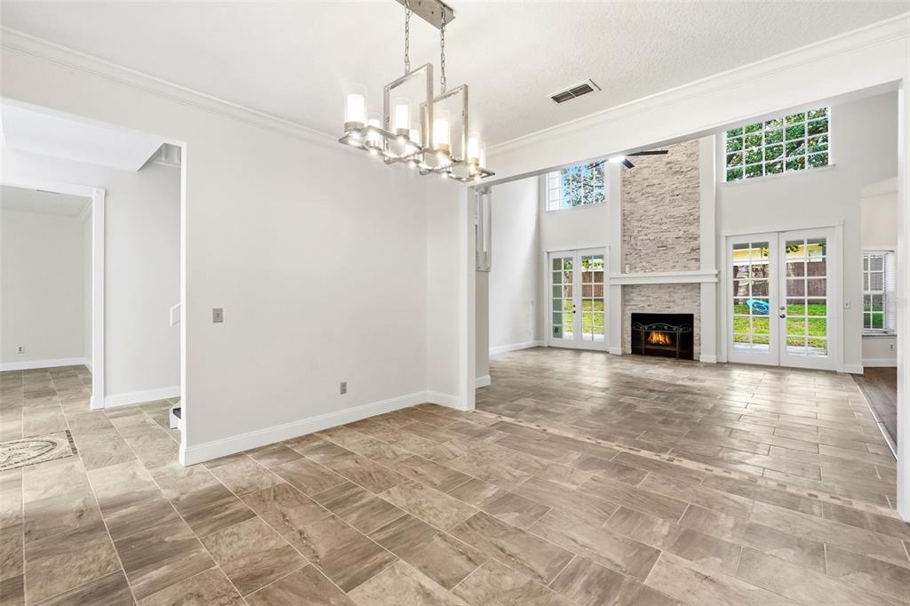 Crown Molding, Eating Space In Kitchen, High Ceilings, Kitchen/Family Room Combo, Open Floorplan, Primary Bedroom Main Floor, Skylight(s), Stone Counters, Thermostat, Walk-In Closet(s)