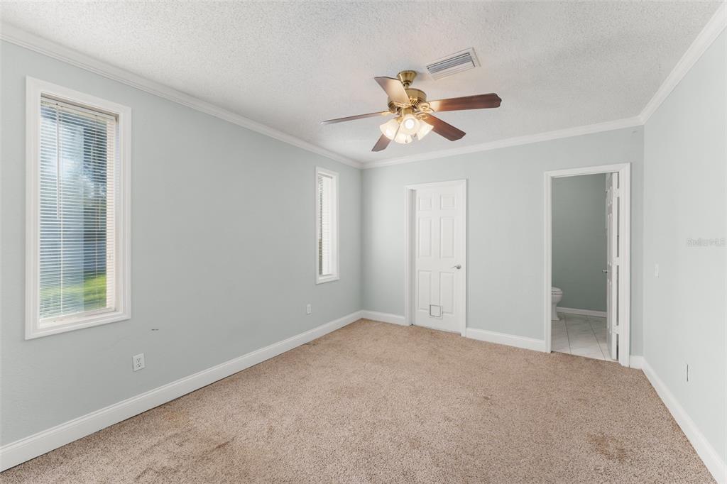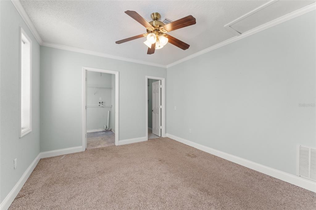 Ceiling Fan(s), Crown Molding, Eating Space In Kitchen, Open Floorplan, Split Bedroom, Thermostat, Walk-In Closet(s)