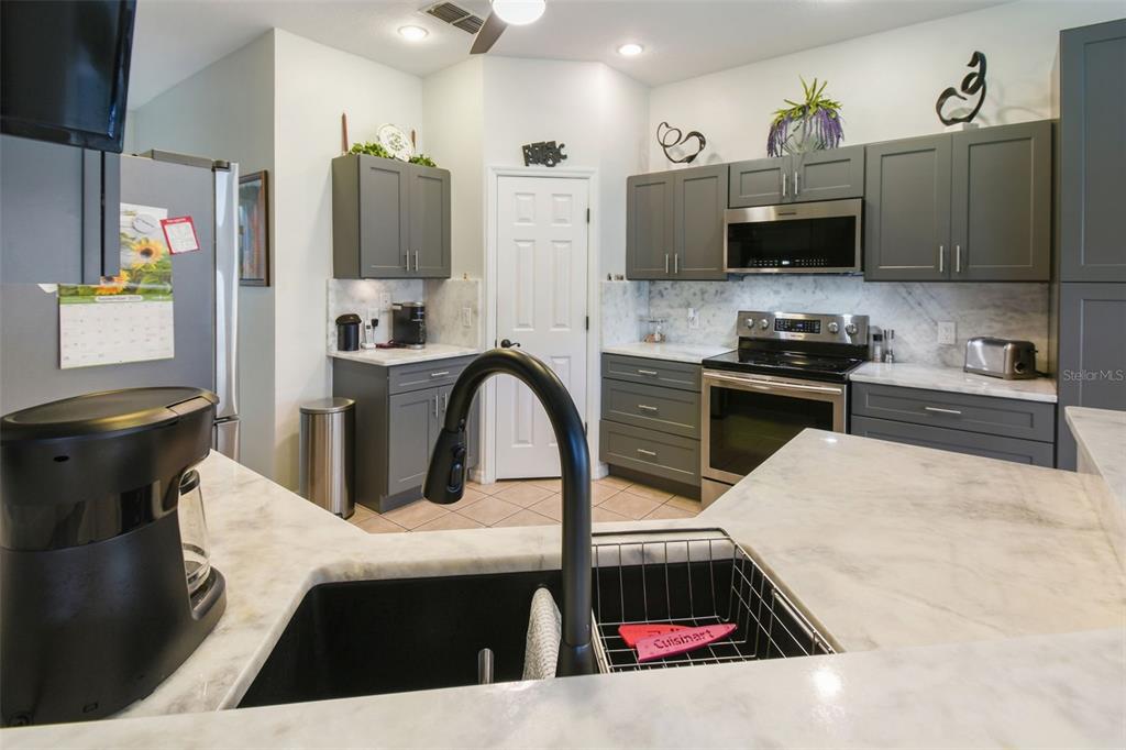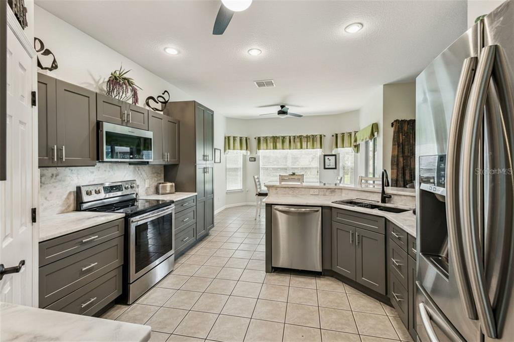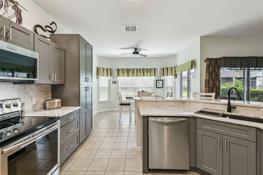Ceiling Fan(s), Eating Space In Kitchen, Primary Bedroom Main Floor, Solid Wood Cabinets, Split Bedroom, Stone Counters, Thermostat, Window Treatments