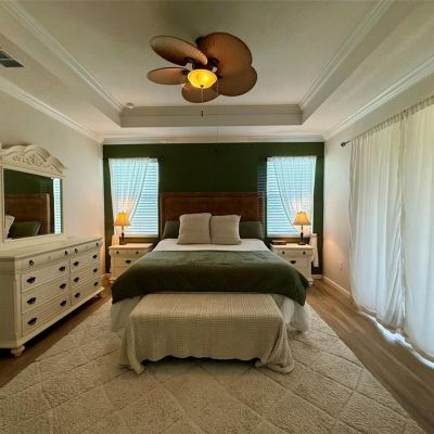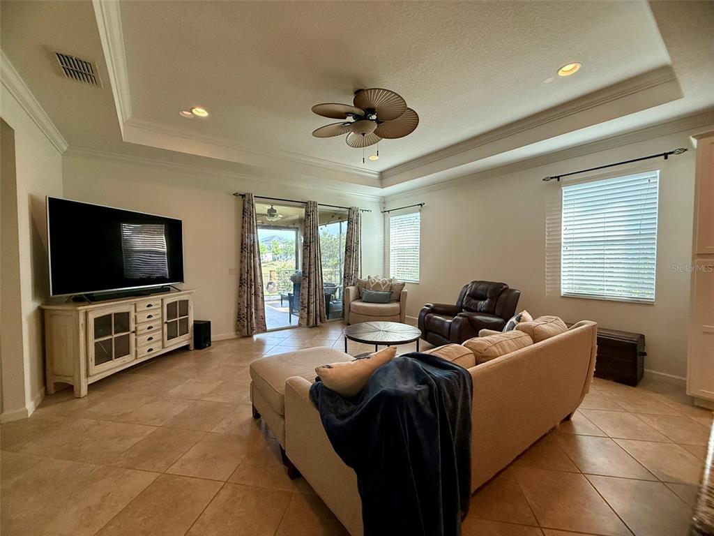 Ceiling Fan(s), Crown Molding, Eating Space In Kitchen, Open Floorplan, Split Bedroom, Thermostat, Tray Ceiling(s), Walk-In Closet(s)