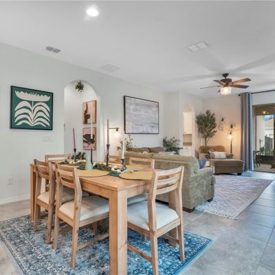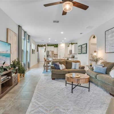 Ceiling Fan(s), Eating Space In Kitchen, High Ceilings, Open Floorplan, Primary Bedroom Main Floor, Split Bedroom, Stone Counters, Thermostat, Walk-In Closet(s)