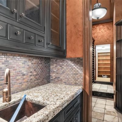 Built-in Features, Ceiling Fan(s), Crown Molding, Dry Bar, Elevator, Solid Wood Cabinets, Stone Counters, Walk-In Closet(s), Wet Bar, Window Treatments