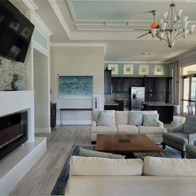 Ceiling Fan(s), Eating Space In Kitchen, Kitchen/Family Room Combo, Open Floorplan, Primary Bedroom Main Floor, Solid Surface Counters, Solid Wood Cabinets, Stone Counters, Tray Ceiling(s), Walk-In Closet(s)