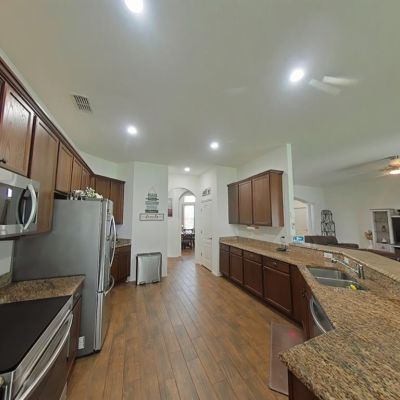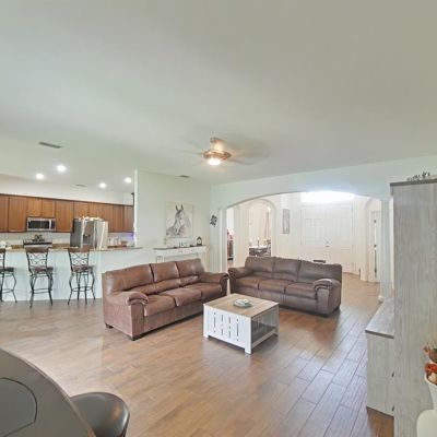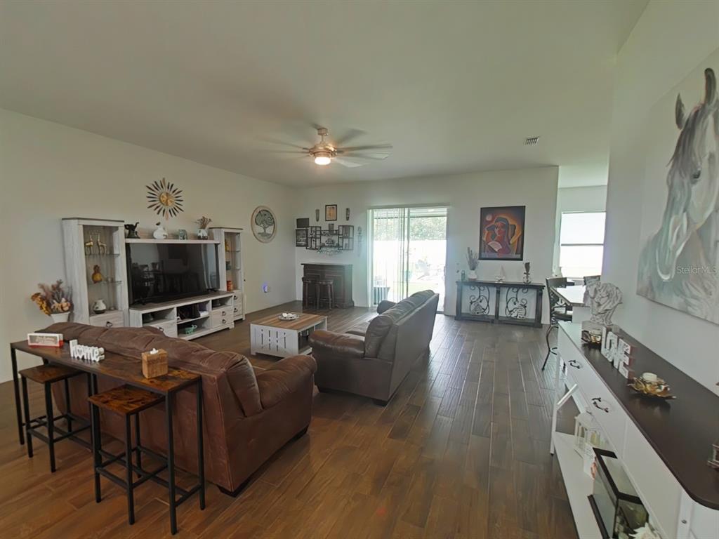 Ceiling Fan(s), Eating Space In Kitchen, Kitchen/Family Room Combo, Open Floorplan, Primary Bedroom Main Floor, Solid Wood Cabinets, Split Bedroom, Stone Counters, Walk-In Closet(s)