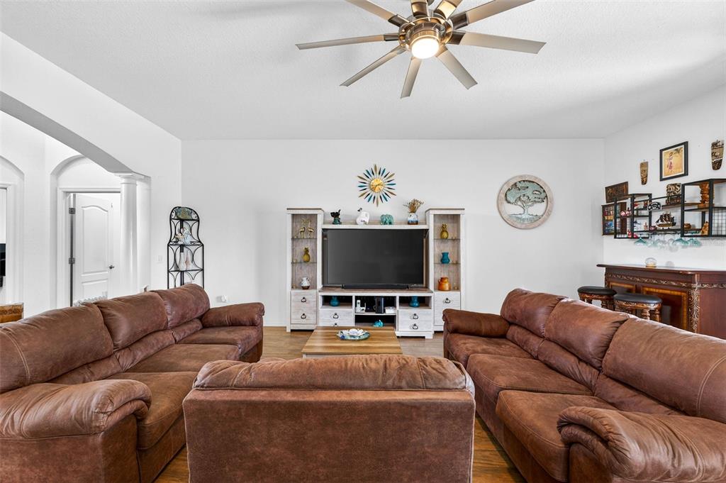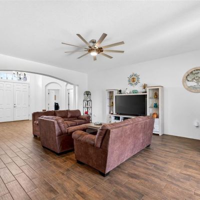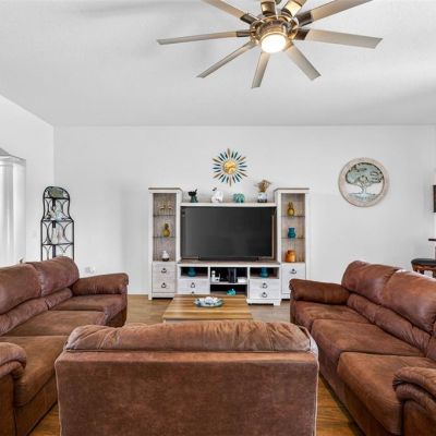 Ceiling Fan(s), Eating Space In Kitchen, Kitchen/Family Room Combo, Open Floorplan, Primary Bedroom Main Floor, Solid Wood Cabinets, Split Bedroom, Stone Counters, Thermostat, Walk-In Closet(s)