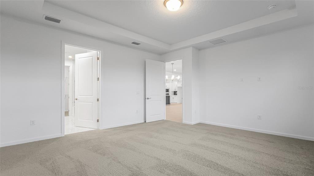 Crown Molding, Living Room/Dining Room Combo, Primary Bedroom Main Floor, Stone Counters, Thermostat, Tray Ceiling(s), Walk-In Closet(s)