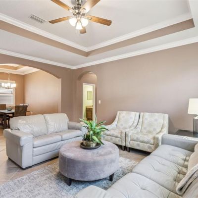 High Ceilings, Kitchen/Family Room Combo, Living Room/Dining Room Combo, Open Floorplan, Split Bedroom, Walk-In Closet(s)