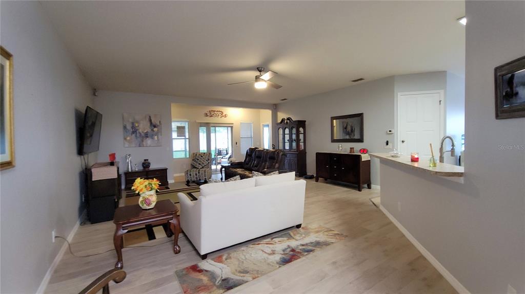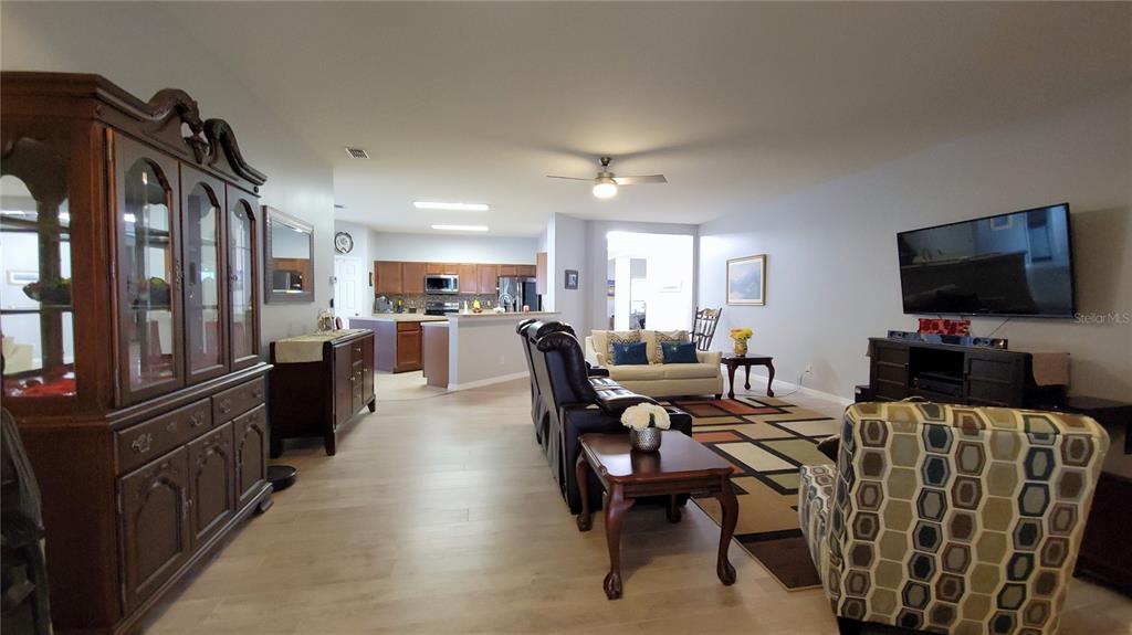 Ceiling Fan(s), Eating Space In Kitchen, High Ceilings, Kitchen/Family Room Combo, Living Room/Dining Room Combo, Open Floorplan, Primary Bedroom Main Floor, Solid Wood Cabinets, Split Bedroom, Walk-In Closet(s), Window Treatments