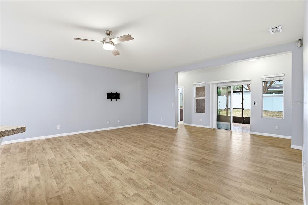 Ceiling Fan(s), Eating Space In Kitchen, High Ceilings, Kitchen/Family Room Combo, Living Room/Dining Room Combo, Open Floorplan, Primary Bedroom Main Floor, Solid Wood Cabinets, Split Bedroom, Walk-In Closet(s), Window Treatments