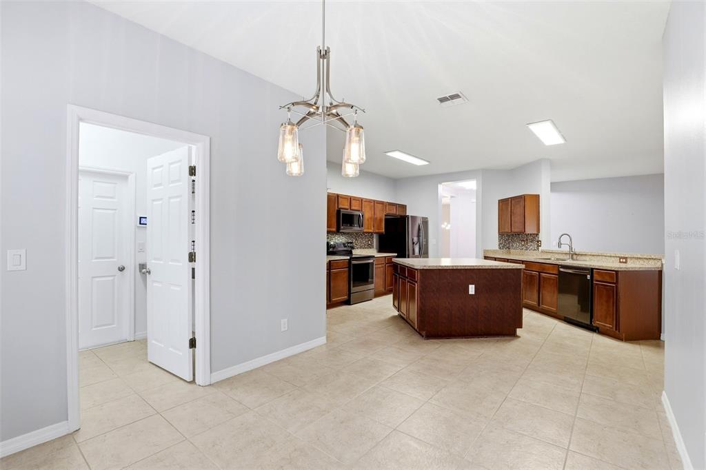 Ceiling Fan(s), Eating Space In Kitchen, High Ceilings, Kitchen/Family Room Combo, Living Room/Dining Room Combo, Open Floorplan, Primary Bedroom Main Floor, Solid Wood Cabinets, Split Bedroom, Walk-In Closet(s), Window Treatments