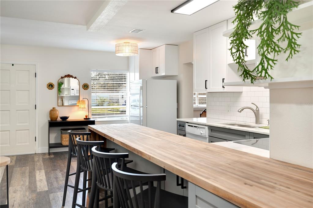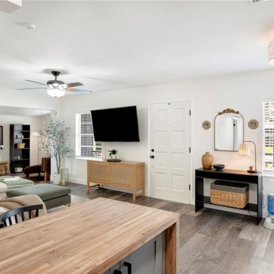 Ceiling Fan(s), Eating Space In Kitchen, Kitchen/Family Room Combo, Open Floorplan, Primary Bedroom Main Floor, Solid Surface Counters, Stone Counters, Thermostat, Window Treatments