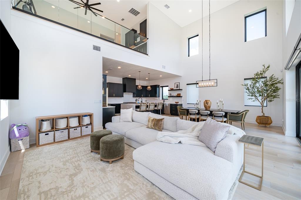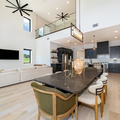 Built-in Features, Cathedral Ceiling(s), Ceiling Fan(s), Eating Space In Kitchen, Elevator, High Ceilings, Kitchen/Family Room Combo, Living Room/Dining Room Combo, Open Floorplan, PrimaryBedroom Upstairs, Thermostat, Walk-In Closet(s), Wet Bar, Window Treatments