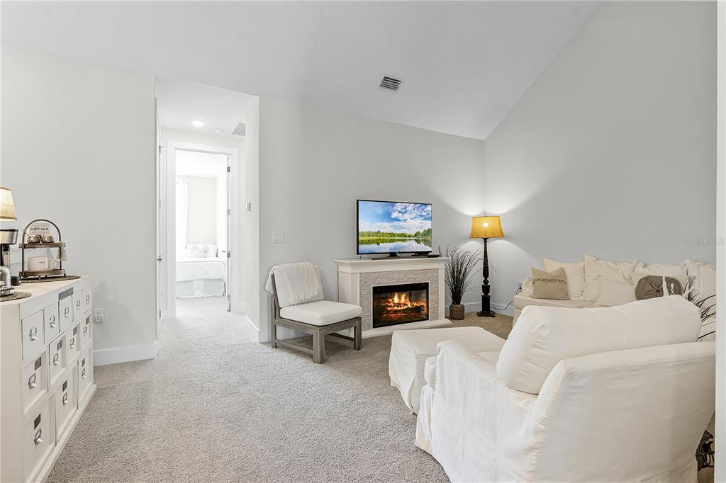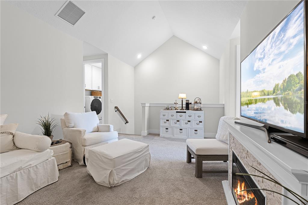 Crown Molding, High Ceilings, Kitchen/Family Room Combo, PrimaryBedroom Upstairs, Stone Counters, Thermostat, Vaulted Ceiling(s), Walk-In Closet(s), Window Treatments