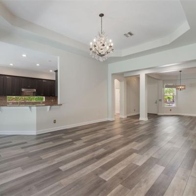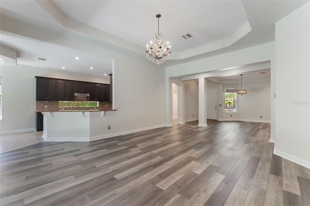 Cathedral Ceiling(s), Ceiling Fan(s), Coffered Ceiling(s), Eating Space In Kitchen, High Ceilings, Kitchen/Family Room Combo, Open Floorplan, Primary Bedroom Main Floor, Solid Surface Counters, Solid Wood Cabinets, Split Bedroom, Stone Counters, Thermostat, Vaulted Ceiling(s), Walk-In Closet(s)