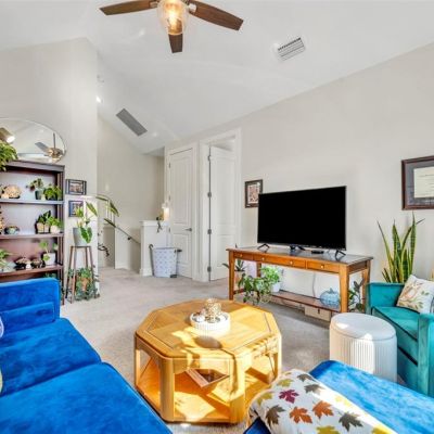 Ceiling Fan(s), High Ceilings, Living Room/Dining Room Combo, Open Floorplan, PrimaryBedroom Upstairs, Thermostat, Walk-In Closet(s), Window Treatments
