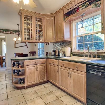 Ceiling Fan(s), Eating Space In Kitchen, Skylight(s), Solid Surface Counters, Solid Wood Cabinets