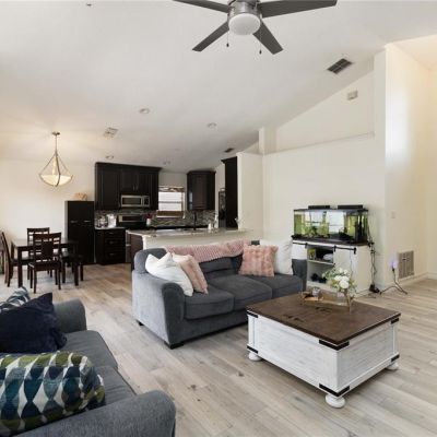 Ceiling Fan(s), High Ceilings, Open Floorplan, Primary Bedroom Main Floor, Solid Surface Counters, Vaulted Ceiling(s), Walk-In Closet(s)