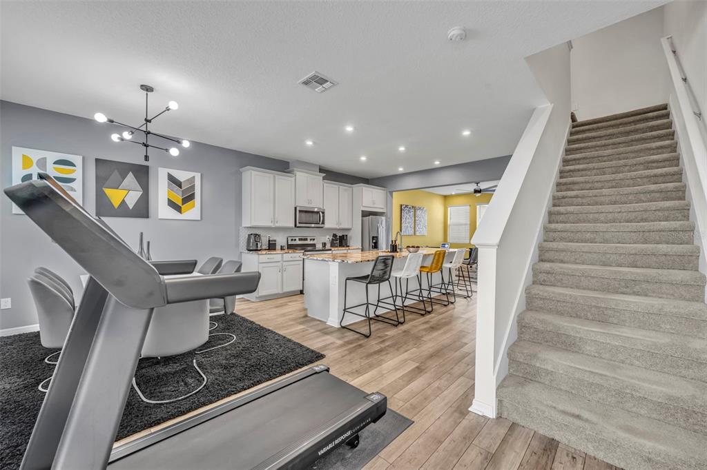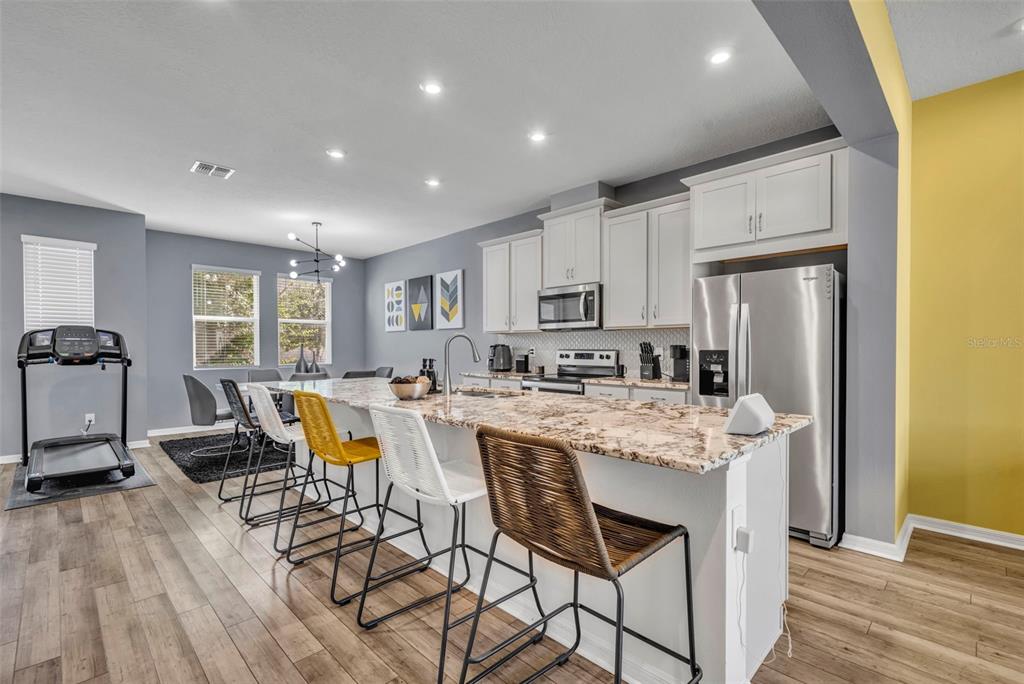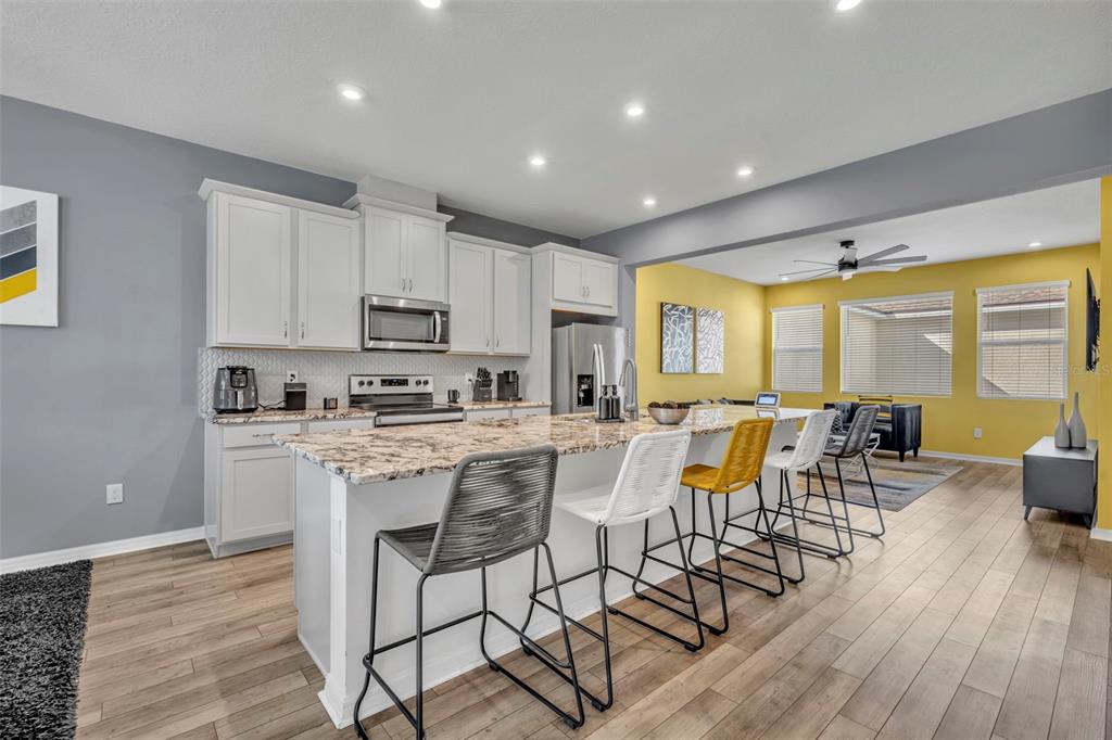 Ceiling Fan(s), High Ceilings, Kitchen/Family Room Combo, Open Floorplan, PrimaryBedroom Upstairs, Solid Wood Cabinets, Stone Counters, Thermostat, Walk-In Closet(s), Window Treatments