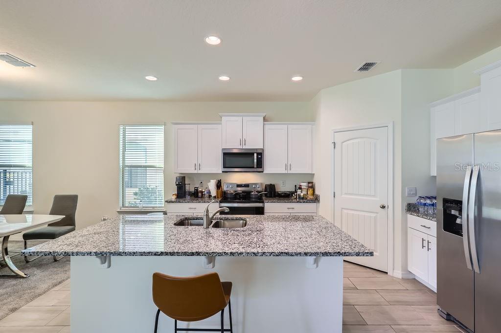 Eating Space In Kitchen, Kitchen/Family Room Combo, Open Floorplan, PrimaryBedroom Upstairs, Solid Surface Counters, Solid Wood Cabinets, Stone Counters, Thermostat, Walk-In Closet(s)