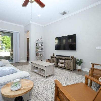 Built-in Features, Ceiling Fan(s), Crown Molding, Eating Space In Kitchen, Kitchen/Family Room Combo, Living Room/Dining Room Combo, Open Floorplan, Solid Wood Cabinets, Stone Counters, Walk-In Closet(s), Window Treatments