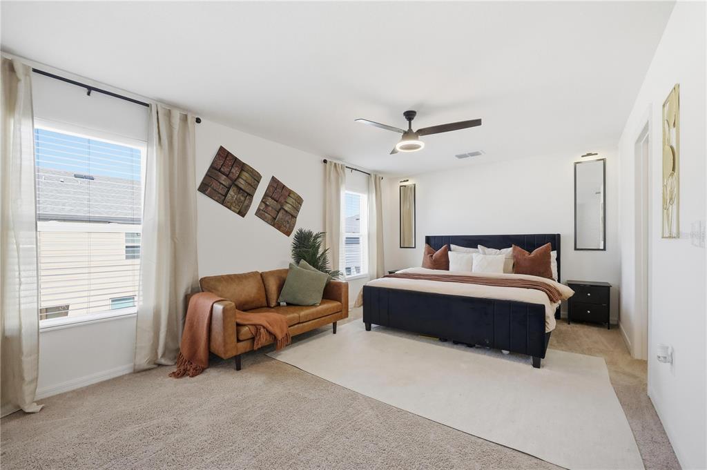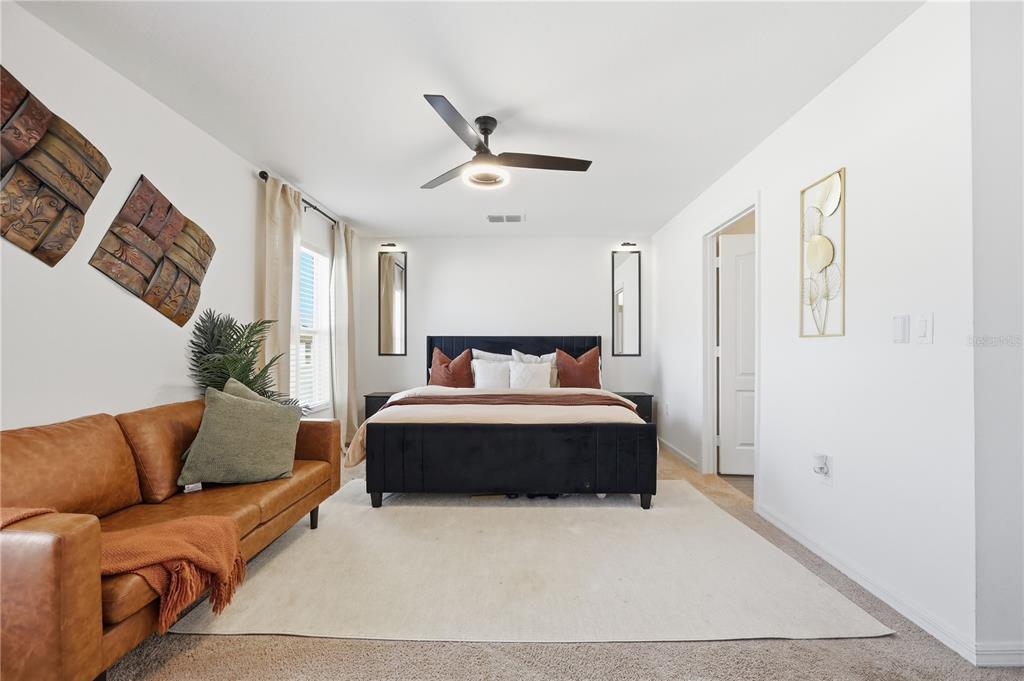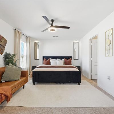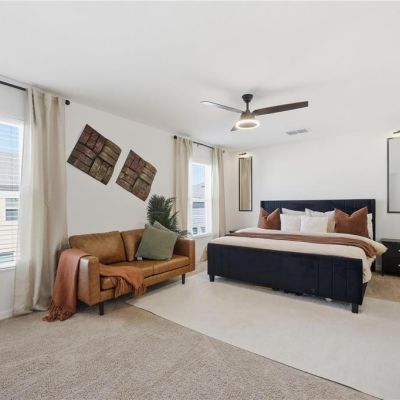 Ceiling Fan(s), High Ceilings, Kitchen/Family Room Combo, Open Floorplan, PrimaryBedroom Upstairs, Smart Home, Thermostat, Walk-In Closet(s), Window Treatments