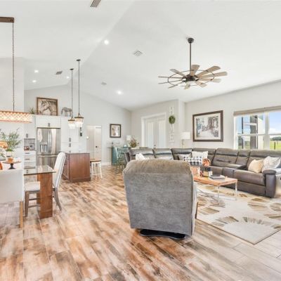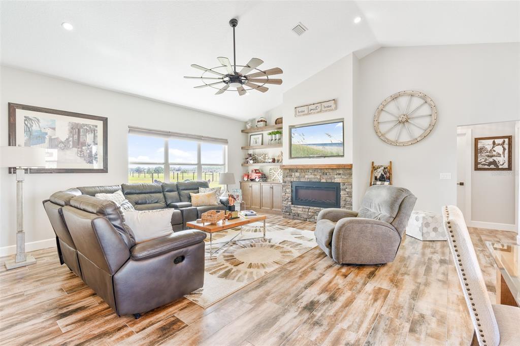 Accessibility Features, Attic Fan, Cathedral Ceiling(s), Ceiling Fan(s), Coffered Ceiling(s), Crown Molding, Eating Space In Kitchen, High Ceilings, Kitchen/Family Room Combo, Living Room/Dining Room Combo, Open Floorplan, Primary Bedroom Main Floor, Split Bedroom, Stone Counters, Thermostat, Vaulted Ceiling(s), Walk-In Closet(s)
