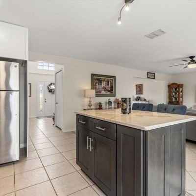 Ceiling Fan(s), Eating Space In Kitchen, High Ceilings, Kitchen/Family Room Combo, Open Floorplan, PrimaryBedroom Upstairs, Solid Surface Counters, Stone Counters, Thermostat, Vaulted Ceiling(s), Walk-In Closet(s)