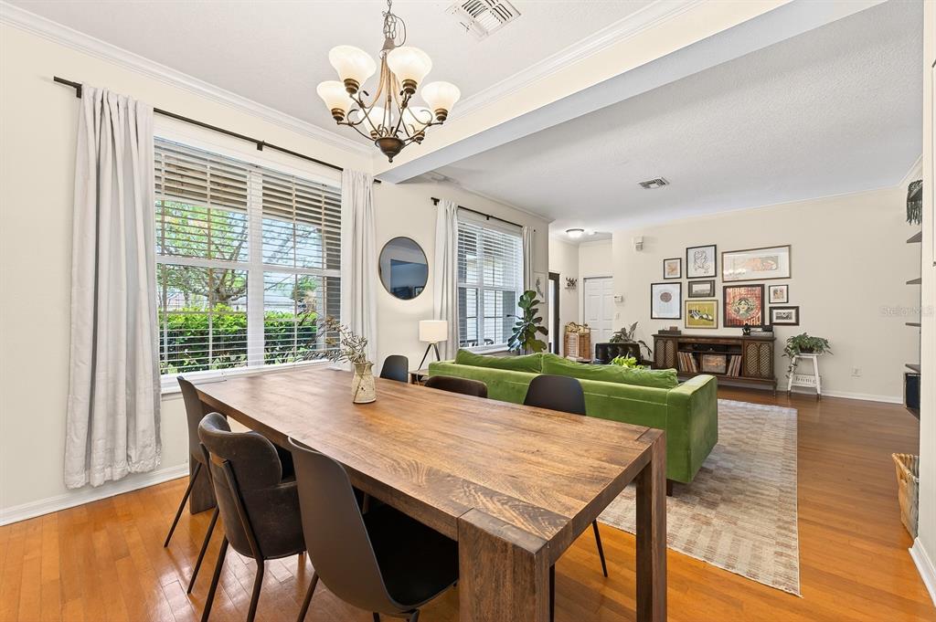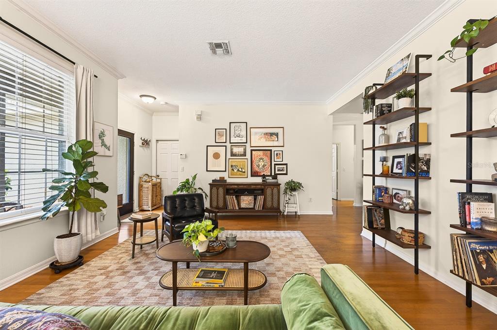 Ceiling Fan(s), Chair Rail, Crown Molding, Kitchen/Family Room Combo, Living Room/Dining Room Combo, Primary Bedroom Main Floor, Solid Wood Cabinets, Split Bedroom, Stone Counters, Walk-In Closet(s), Window Treatments