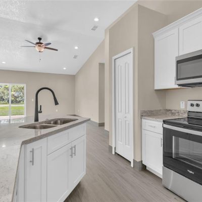 Ceiling Fan(s), High Ceilings, Kitchen/Family Room Combo, Open Floorplan, Primary Bedroom Main Floor, Solid Surface Counters, Solid Wood Cabinets, Walk-In Closet(s)
