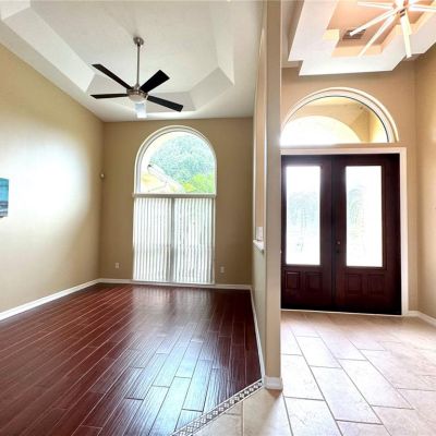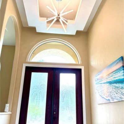Ceiling Fan(s), High Ceilings, Kitchen/Family Room Combo, Open Floorplan, Solid Surface Counters, Split Bedroom, Stone Counters, Tray Ceiling(s), Walk-In Closet(s), Window Treatments
