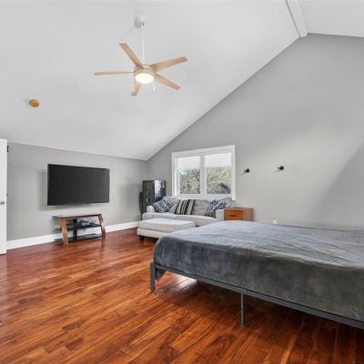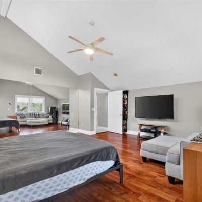 Cathedral Ceiling(s), Ceiling Fan(s), High Ceilings, L Dining, Open Floorplan, PrimaryBedroom Upstairs, Solid Wood Cabinets, Split Bedroom, Stone Counters, Thermostat, Vaulted Ceiling(s), Walk-In Closet(s), Wet Bar, Window Treatments