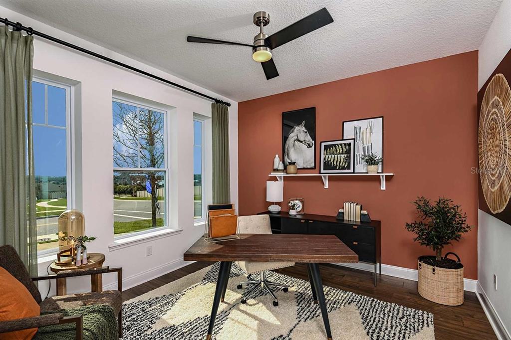 Ceiling Fan(s), Eating Space In Kitchen, High Ceilings, In Wall Pest System, Kitchen/Family Room Combo, Open Floorplan, Primary Bedroom Main Floor, Solid Surface Counters, Thermostat, Walk-In Closet(s)