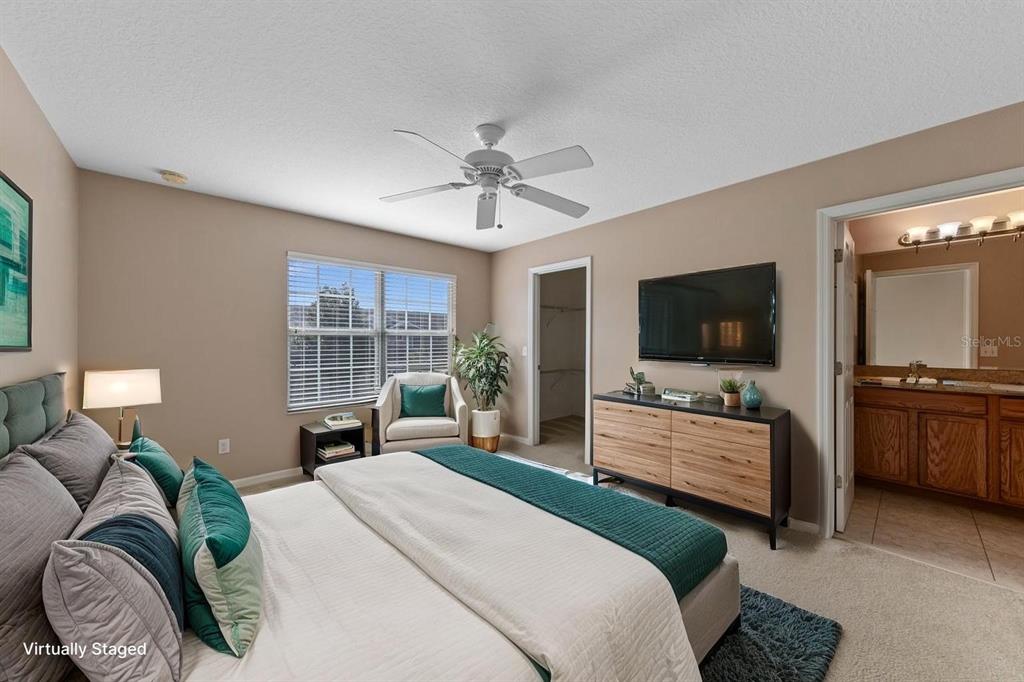 Ceiling Fan(s), High Ceilings, Kitchen/Family Room Combo, Living Room/Dining Room Combo, Open Floorplan, PrimaryBedroom Upstairs, Solid Wood Cabinets, Thermostat, Walk-In Closet(s)