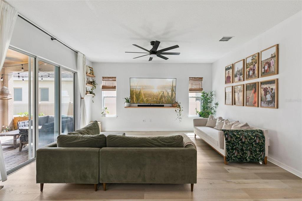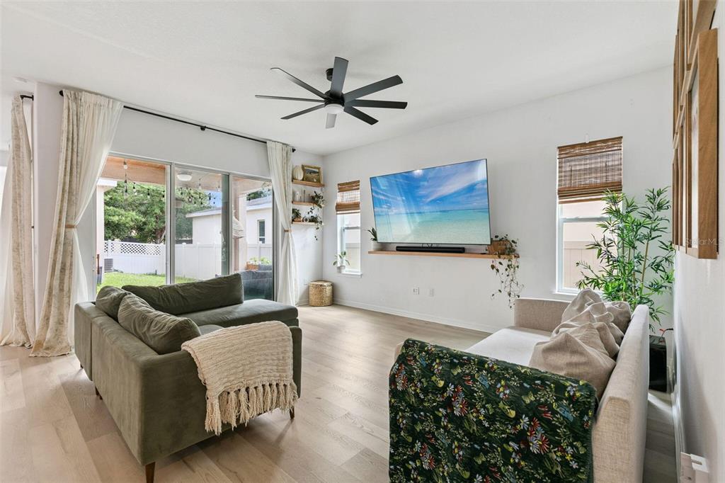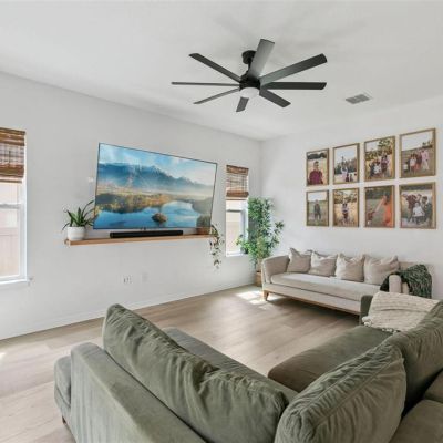 Ceiling Fan(s), Eating Space In Kitchen, High Ceilings, Kitchen/Family Room Combo, Living Room/Dining Room Combo, Open Floorplan, PrimaryBedroom Upstairs, Solid Surface Counters, Solid Wood Cabinets, Stone Counters, Thermostat, Walk-In Closet(s), Window Treatments