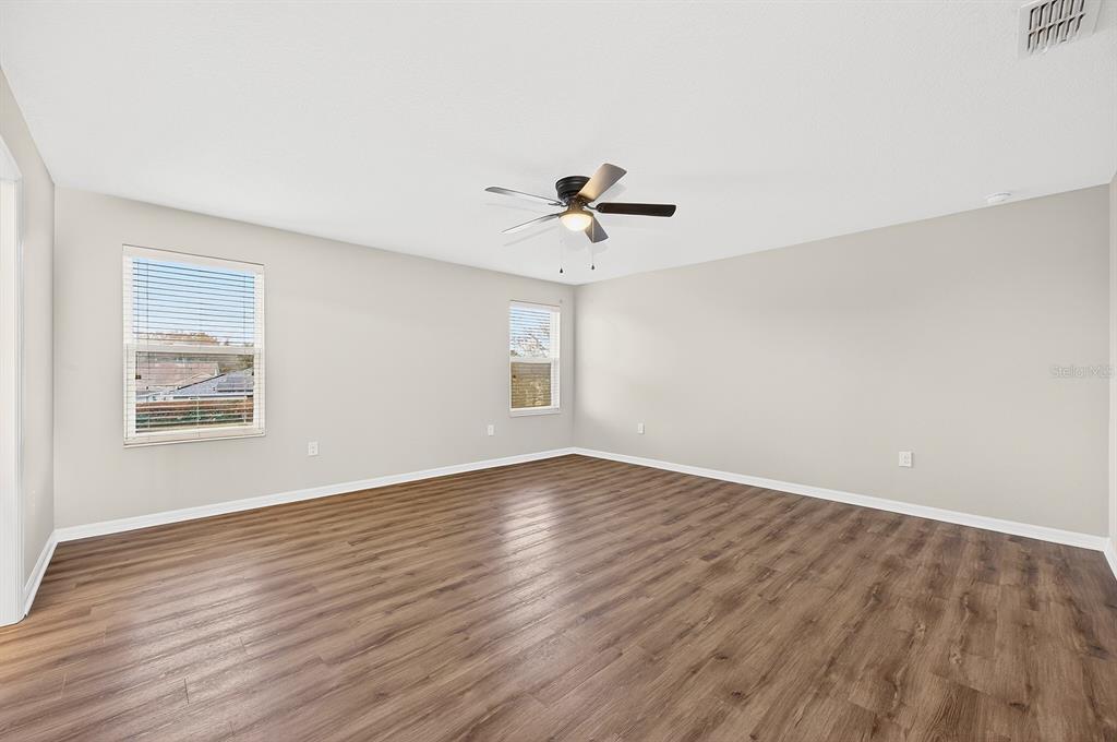 Ceiling Fan(s), High Ceilings, Kitchen/Family Room Combo, Living Room/Dining Room Combo, Open Floorplan, PrimaryBedroom Upstairs, Solid Wood Cabinets, Stone Counters, Thermostat, Walk-In Closet(s)