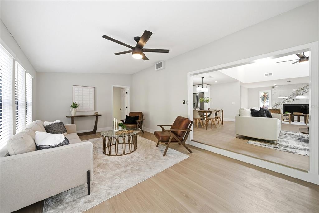 Ceiling Fan(s), High Ceilings, Kitchen/Family Room Combo, Living Room/Dining Room Combo, Open Floorplan, Skylight(s), Split Bedroom, Thermostat, Vaulted Ceiling(s)