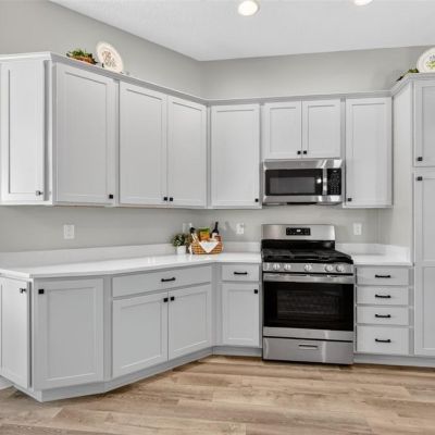 Ceiling Fan(s), Eating Space In Kitchen, High Ceilings, Living Room/Dining Room Combo, Open Floorplan, Primary Bedroom Main Floor, Solid Surface Counters, Split Bedroom, Thermostat, Tray Ceiling(s), Vaulted Ceiling(s), Walk-In Closet(s)