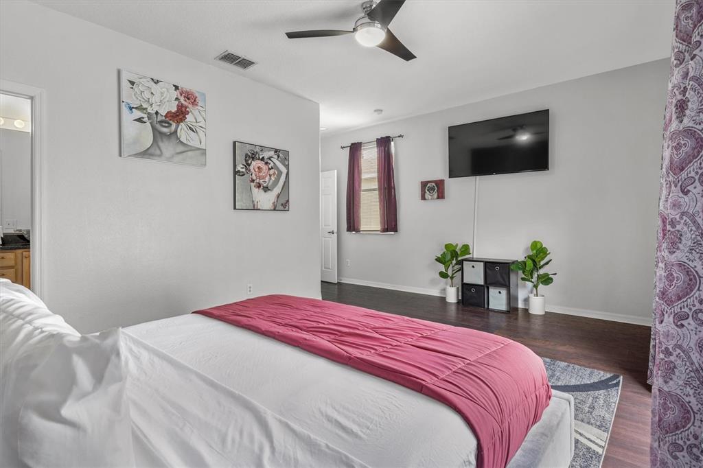 Ceiling Fan(s), Eating Space In Kitchen, Kitchen/Family Room Combo, PrimaryBedroom Upstairs, Solid Surface Counters, Split Bedroom, Walk-In Closet(s), Window Treatments