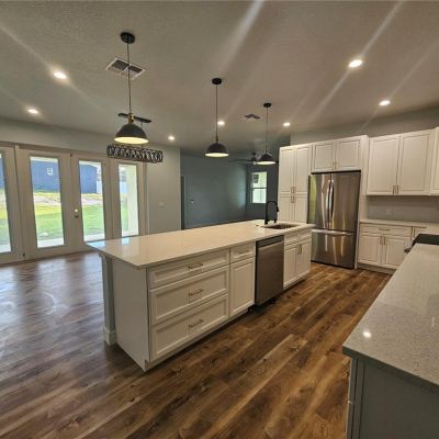 Ceiling Fan(s), Open Floorplan, Primary Bedroom Main Floor, Solid Surface Counters, Thermostat, Walk-In Closet(s)