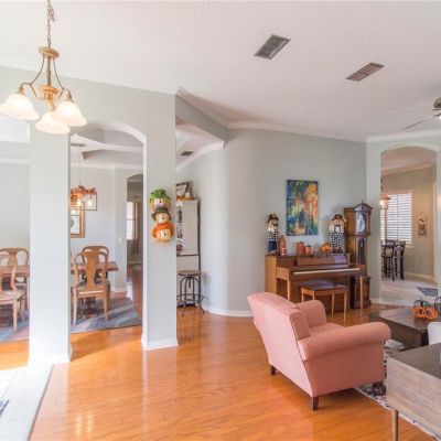 Ceiling Fan(s), Eating Space In Kitchen, High Ceilings, Primary Bedroom Main Floor, Solid Surface Counters