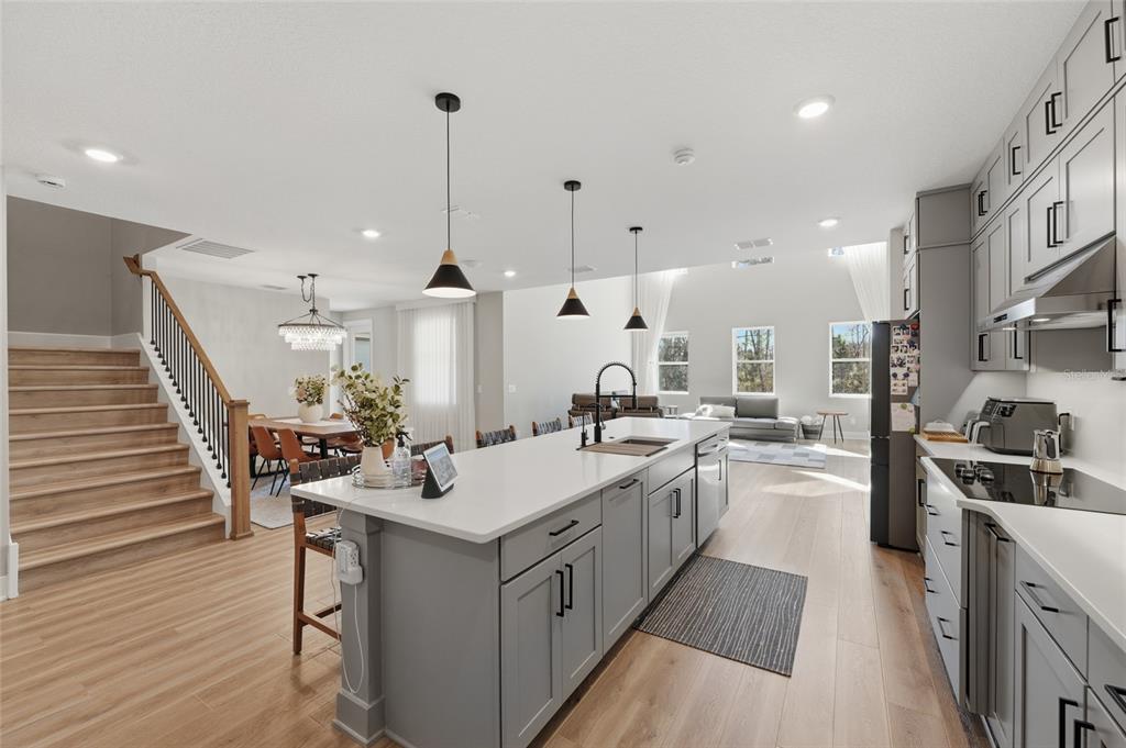 Eating Space In Kitchen, High Ceilings, Kitchen/Family Room Combo, Living Room/Dining Room Combo, Open Floorplan, Solid Wood Cabinets, Stone Counters, Thermostat, Walk-In Closet(s)