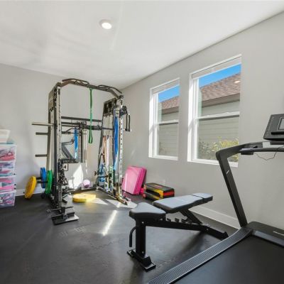 Eating Space In Kitchen, High Ceilings, Kitchen/Family Room Combo, Living Room/Dining Room Combo, Open Floorplan, Solid Wood Cabinets, Stone Counters, Thermostat, Walk-In Closet(s)