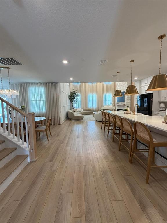 Eating Space In Kitchen, High Ceilings, Kitchen/Family Room Combo, Living Room/Dining Room Combo, Open Floorplan, PrimaryBedroom Upstairs, Solid Wood Cabinets, Stone Counters, Thermostat, Walk-In Closet(s)