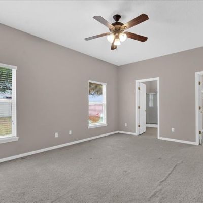 Ceiling Fan(s), Crown Molding, Solid Wood Cabinets, Stone Counters, Thermostat, Window Treatments